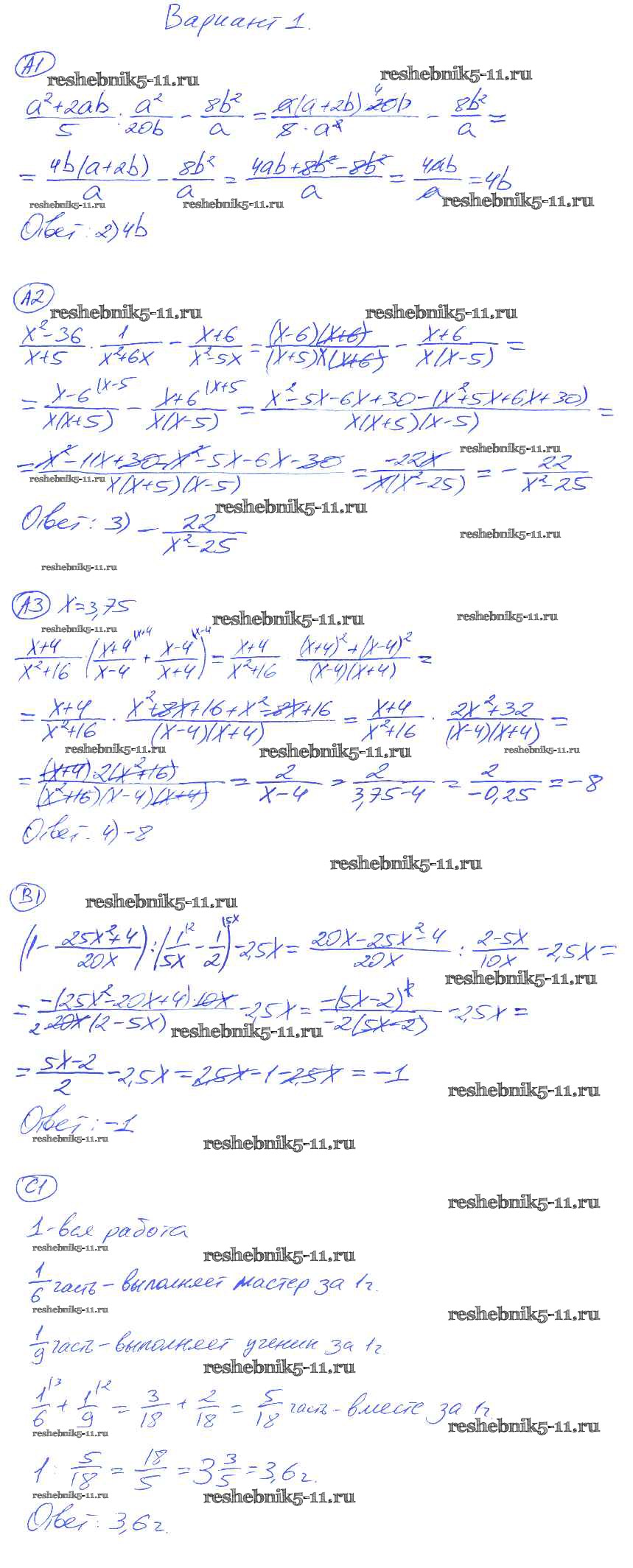 Готовая домашняя работа с ответами по Алгебре за 8 класс Глазков, Гаиашвили Самостоятельные и контрольные работы УМК Экзамен 2012 ФГОС - СР-7. Варианты 1