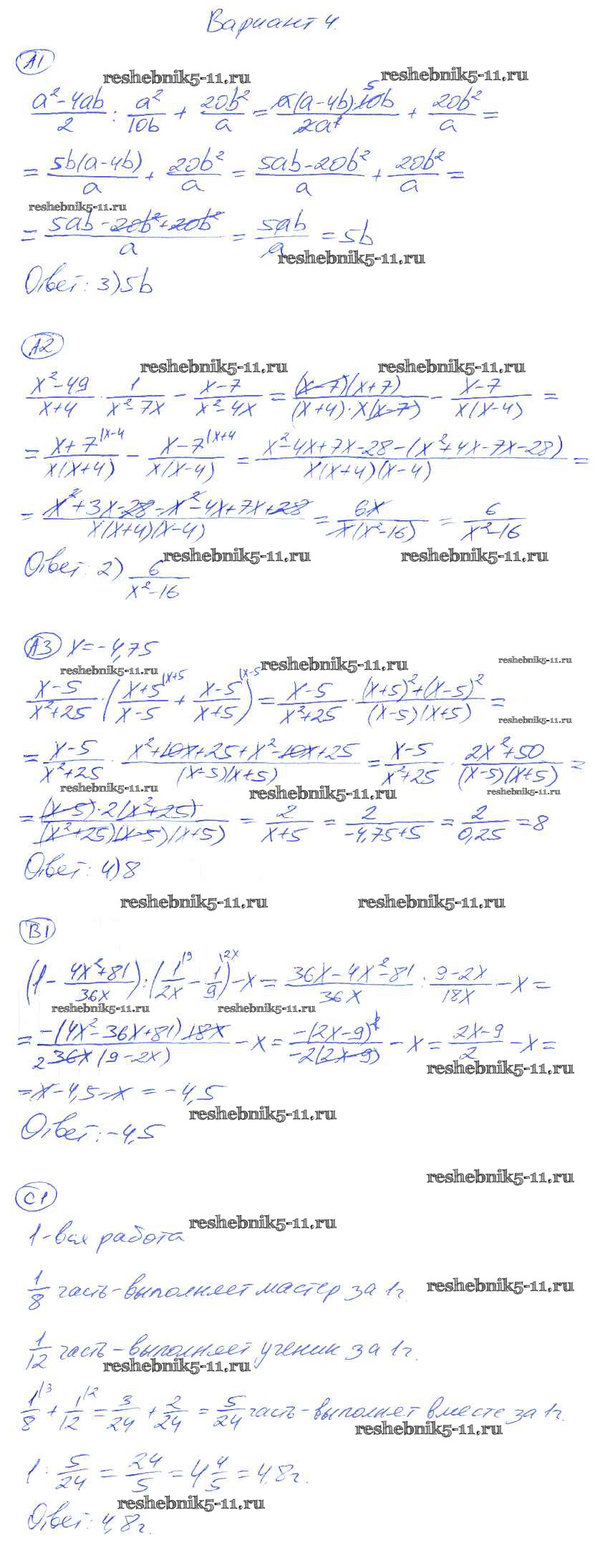 Готовая домашняя работа с ответами по Алгебре за 8 класс Глазков, Гаиашвили Самостоятельные и контрольные работы УМК Экзамен 2012 ФГОС - СР-7. Варианты 4
