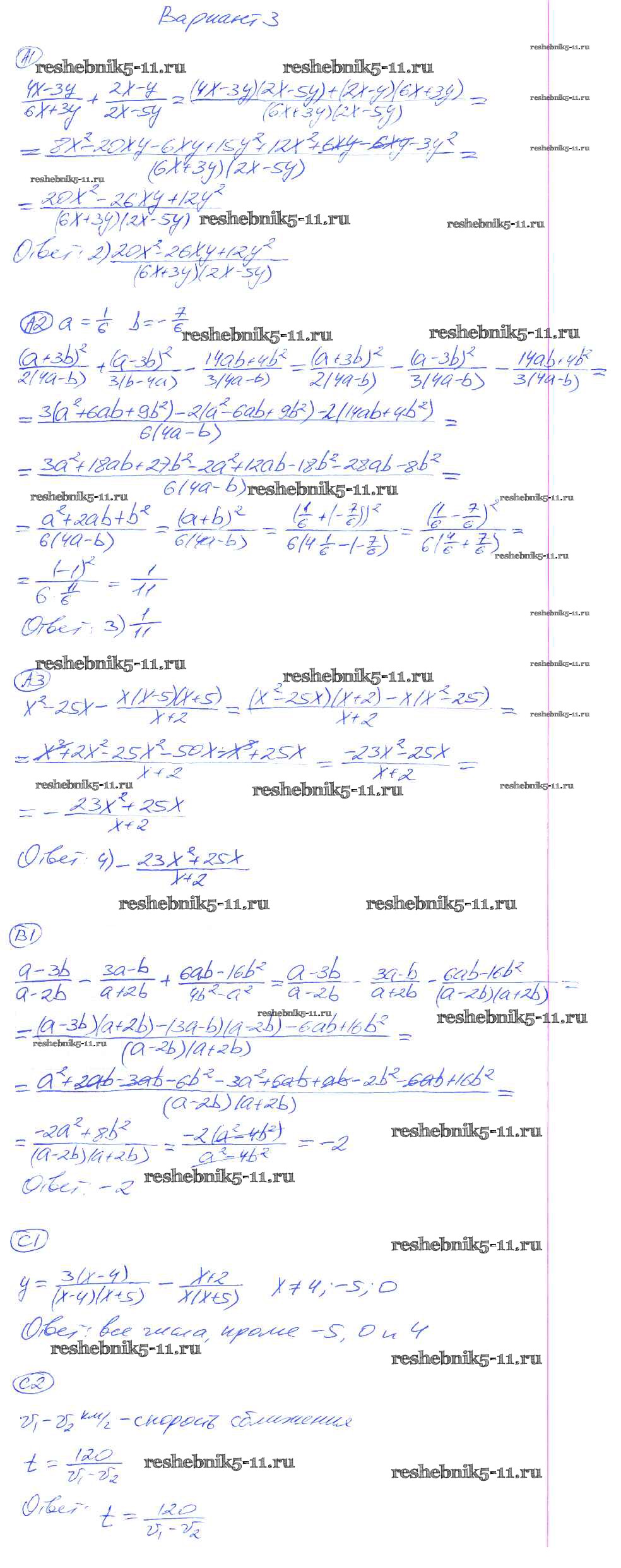 Готовая домашняя работа с ответами по Алгебре за 8 класс Глазков, Гаиашвили Самостоятельные и контрольные работы УМК Экзамен 2012 ФГОС - КР-1. Варианты 3