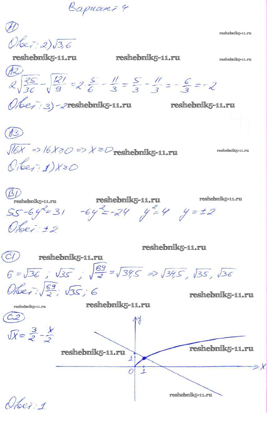 Готовая домашняя работа с ответами по Алгебре за 8 класс Глазков, Гаиашвили Самостоятельные и контрольные работы УМК Экзамен 2012 ФГОС - КР-3. Варианты 4
