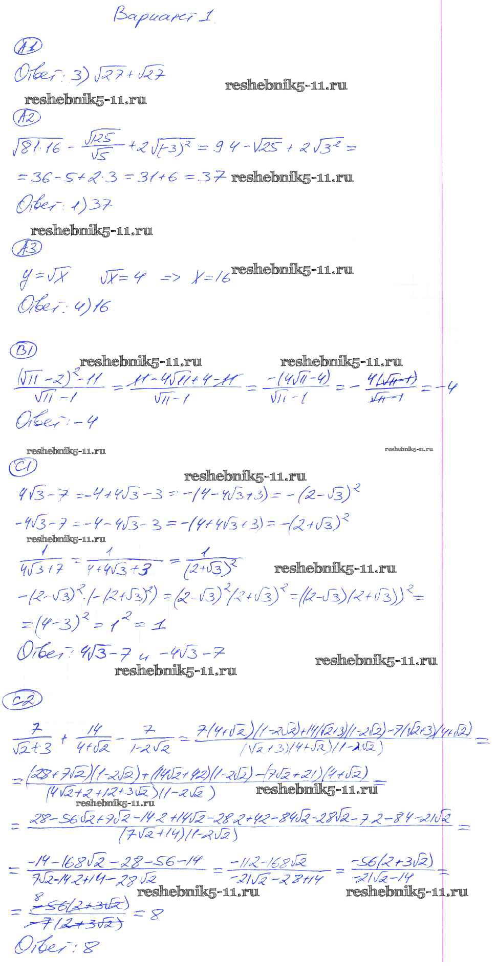 Готовая домашняя работа с ответами по Алгебре за 8 класс Глазков, Гаиашвили Самостоятельные и контрольные работы УМК Экзамен 2012 ФГОС - КР-4. Варианты 1