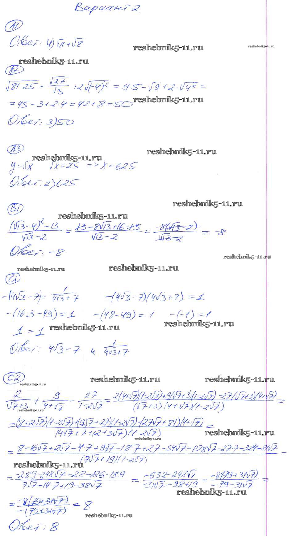 Готовая домашняя работа с ответами по Алгебре за 8 класс Глазков, Гаиашвили Самостоятельные и контрольные работы УМК Экзамен 2012 ФГОС - КР-4. Варианты 2