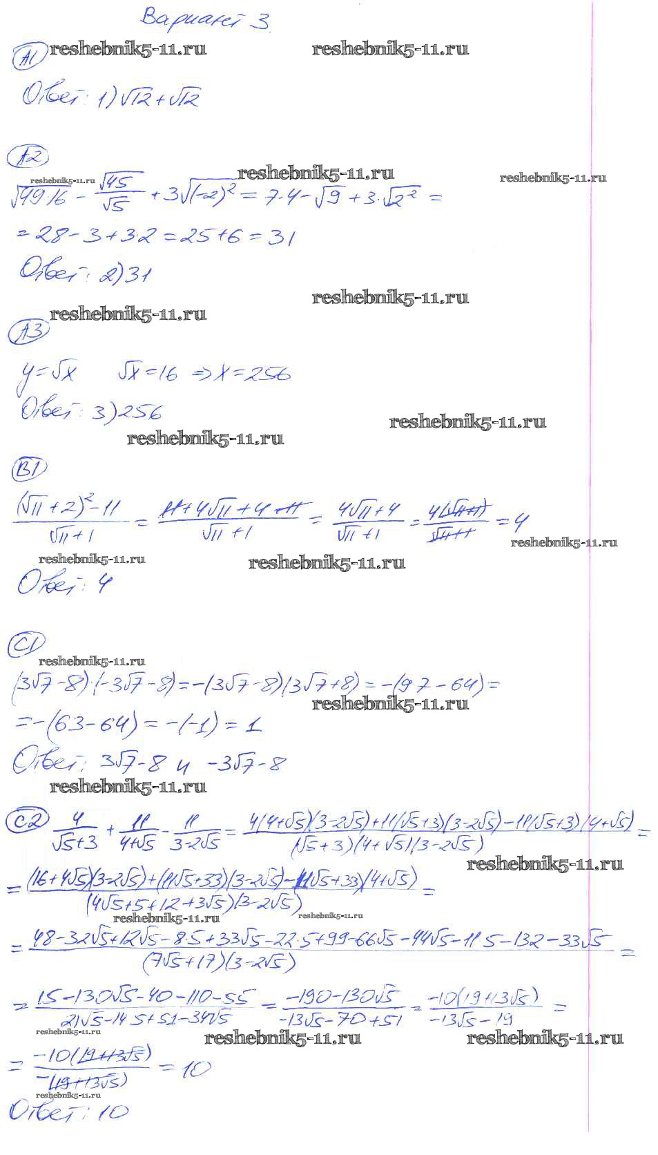 Готовая домашняя работа с ответами по Алгебре за 8 класс Глазков, Гаиашвили Самостоятельные и контрольные работы УМК Экзамен 2012 ФГОС - КР-4. Варианты 3