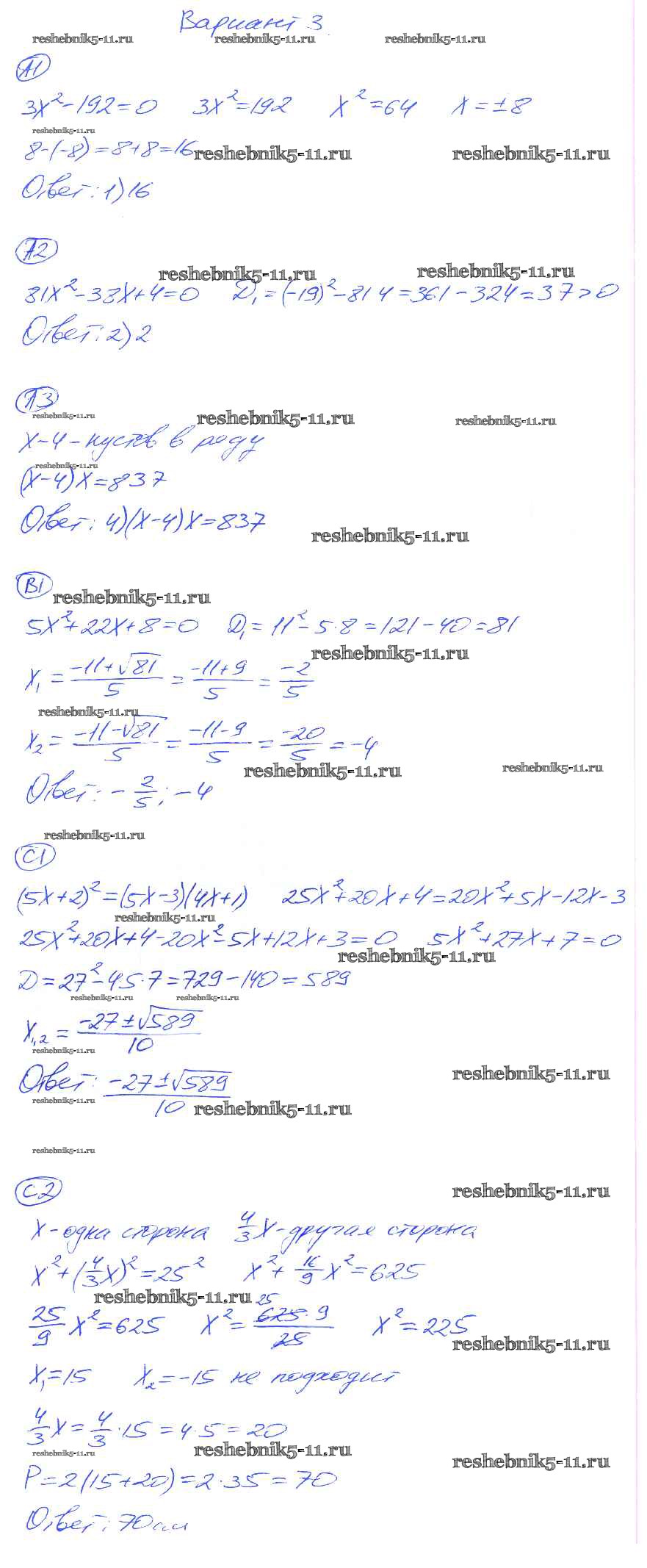 Готовая домашняя работа с ответами по Алгебре за 8 класс Глазков, Гаиашвили Самостоятельные и контрольные работы УМК Экзамен 2012 ФГОС - КР-5. Варианты 3