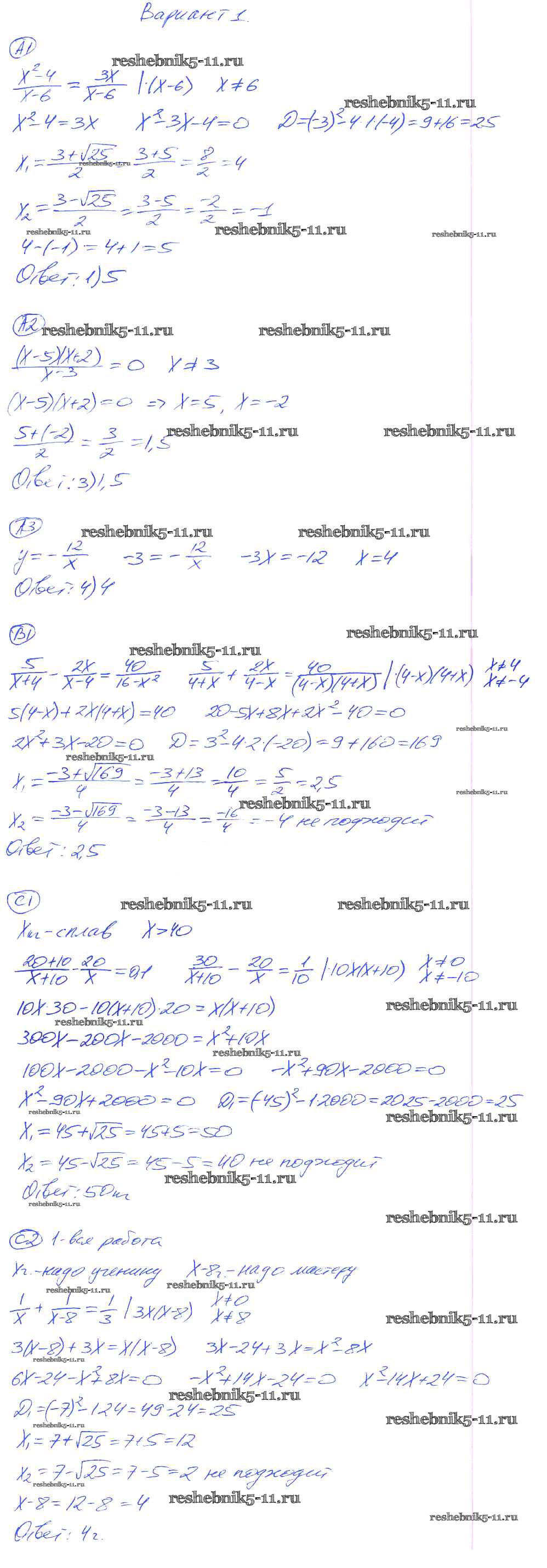 Готовая домашняя работа с ответами по Алгебре за 8 класс Глазков, Гаиашвили Самостоятельные и контрольные работы УМК Экзамен 2012 ФГОС - КР-6. Варианты 1