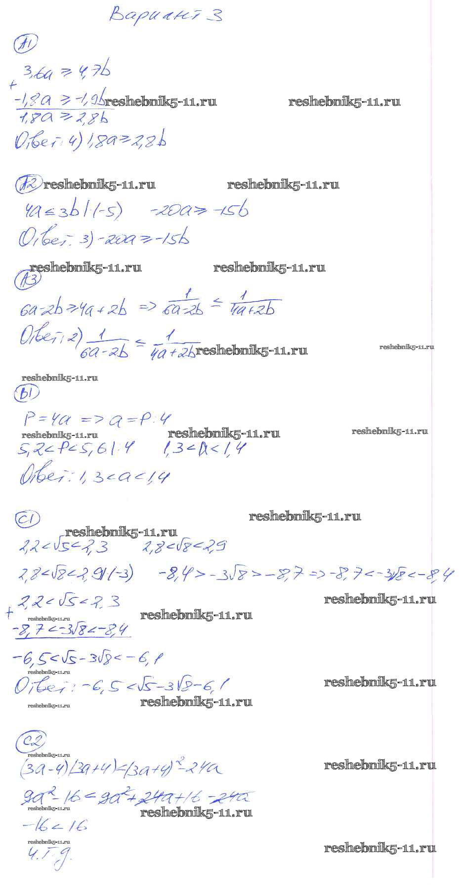 Готовая домашняя работа с ответами по Алгебре за 8 класс Глазков, Гаиашвили Самостоятельные и контрольные работы УМК Экзамен 2012 ФГОС - КР-7. Варианты 3