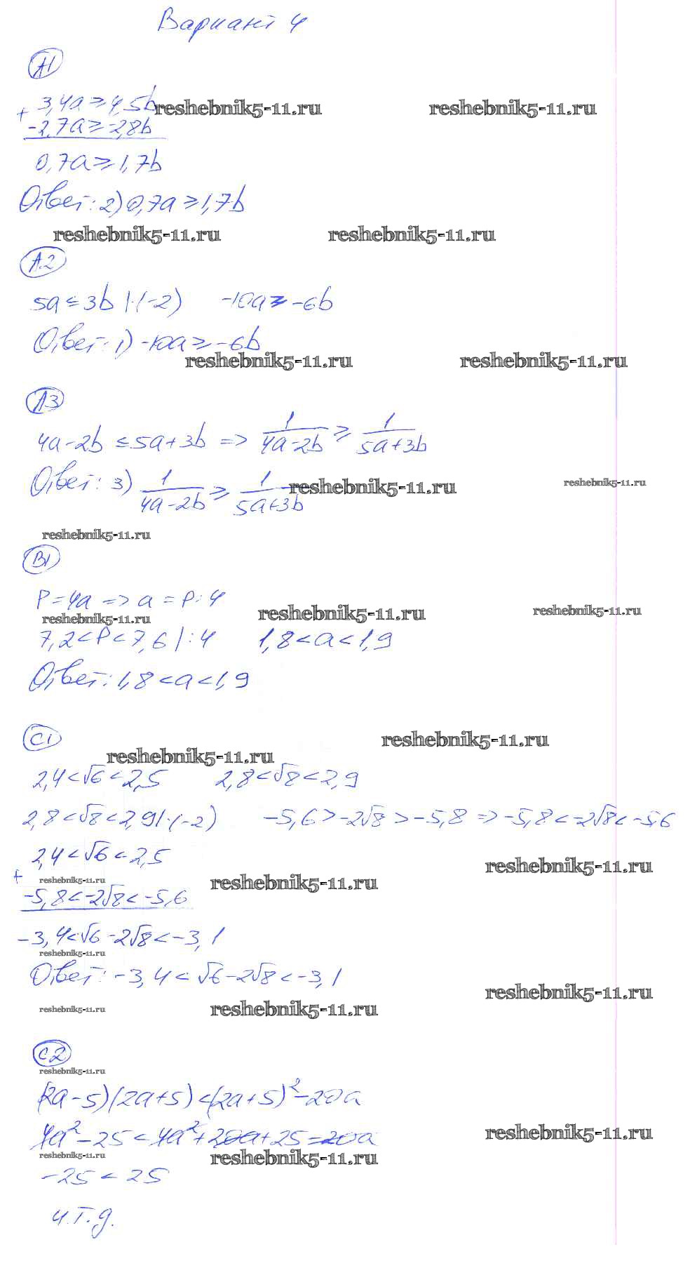 Готовая домашняя работа с ответами по Алгебре за 8 класс Глазков, Гаиашвили Самостоятельные и контрольные работы УМК Экзамен 2012 ФГОС - КР-7. Варианты 4