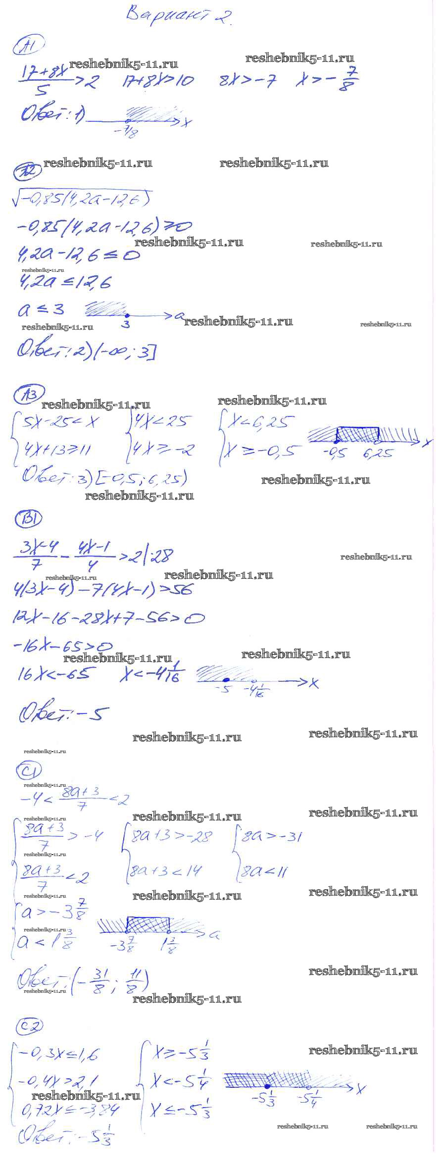 Готовая домашняя работа с ответами по Алгебре за 8 класс Глазков, Гаиашвили Самостоятельные и контрольные работы УМК Экзамен 2012 ФГОС - КР-8. Варианты 2