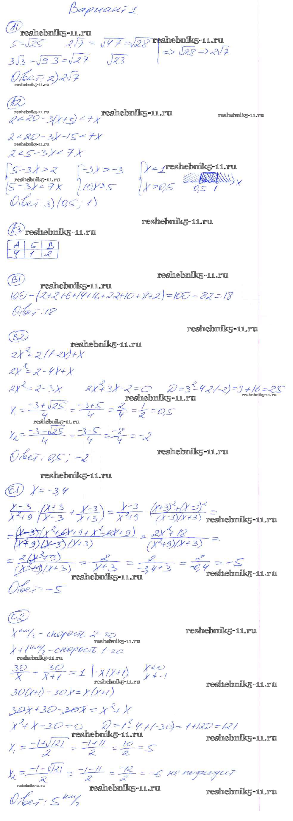 Готовая домашняя работа с ответами по Алгебре за 8 класс Глазков, Гаиашвили Самостоятельные и контрольные работы УМК Экзамен 2012 ФГОС - КР-9. Варианты 1