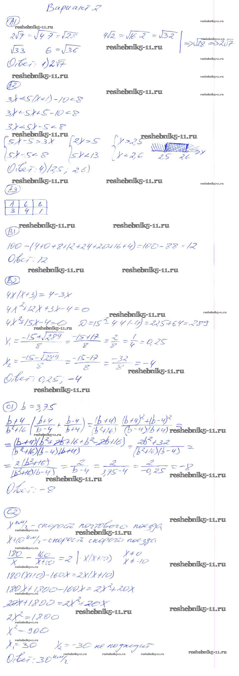 Готовая домашняя работа с ответами по Алгебре за 8 класс Глазков, Гаиашвили Самостоятельные и контрольные работы УМК Экзамен 2012 ФГОС - КР-9. Варианты 2