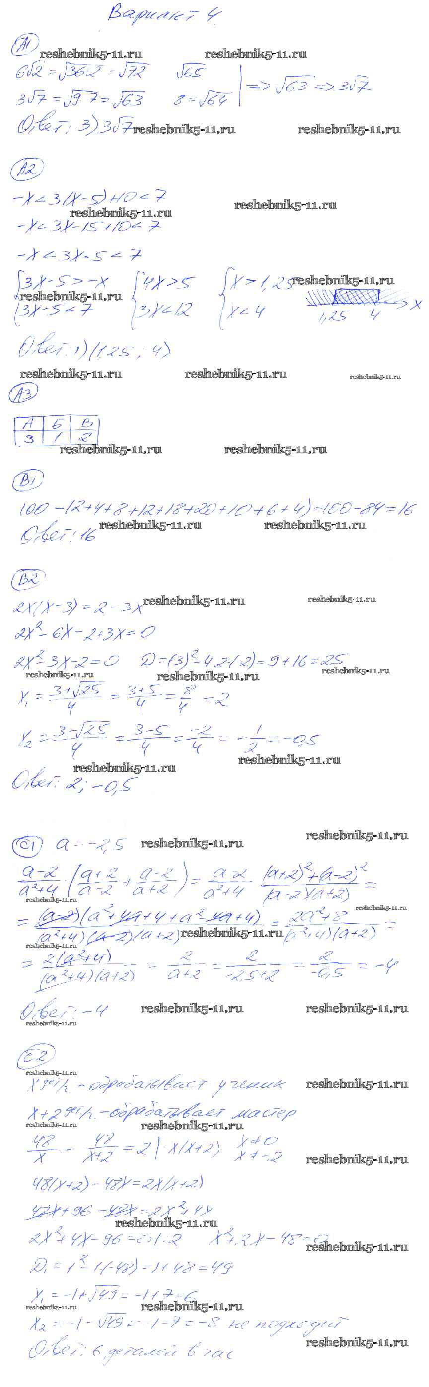 Готовая домашняя работа с ответами по Алгебре за 8 класс Глазков, Гаиашвили Самостоятельные и контрольные работы УМК Экзамен 2012 ФГОС - КР-9. Варианты 4
