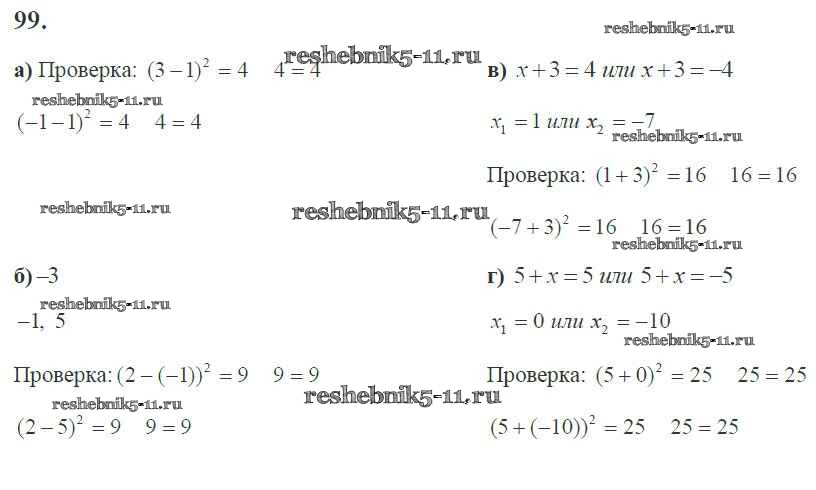 Готовая домашняя работа с ответами по Алгебре за 8 класс Минаева, Рослова Рабочая тетрадь Часть 1, 2 Просвещение 2017 ФГОС - Упражнения 99