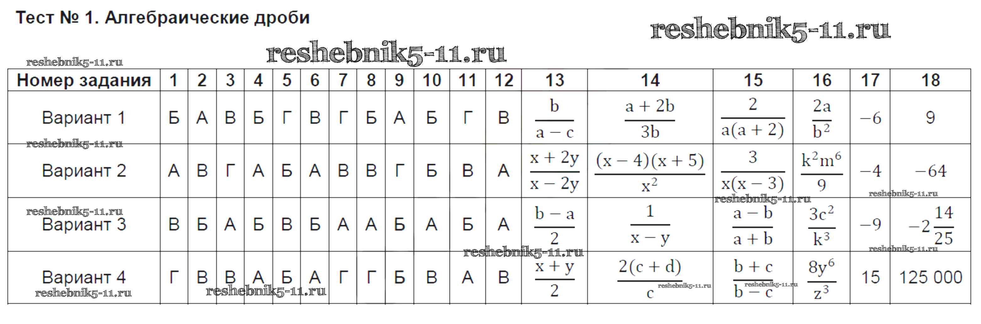 Готовая домашняя работа с ответами по Алгебре за 8 класс Ключникова, Комиссарова Тесты УМК Экзамен 2011 ФГОС - Тесты 1