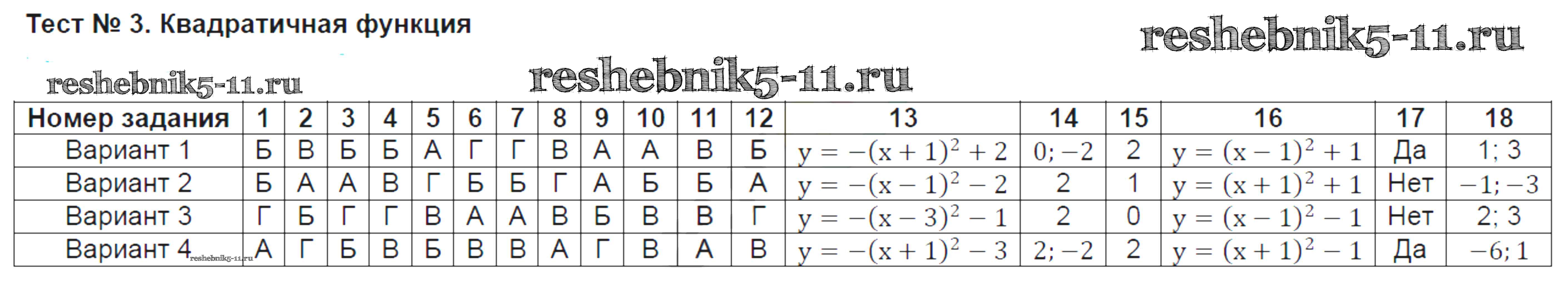 Готовая домашняя работа с ответами по Алгебре за 8 класс Ключникова, Комиссарова Тесты УМК Экзамен 2011 ФГОС - Тесты 3