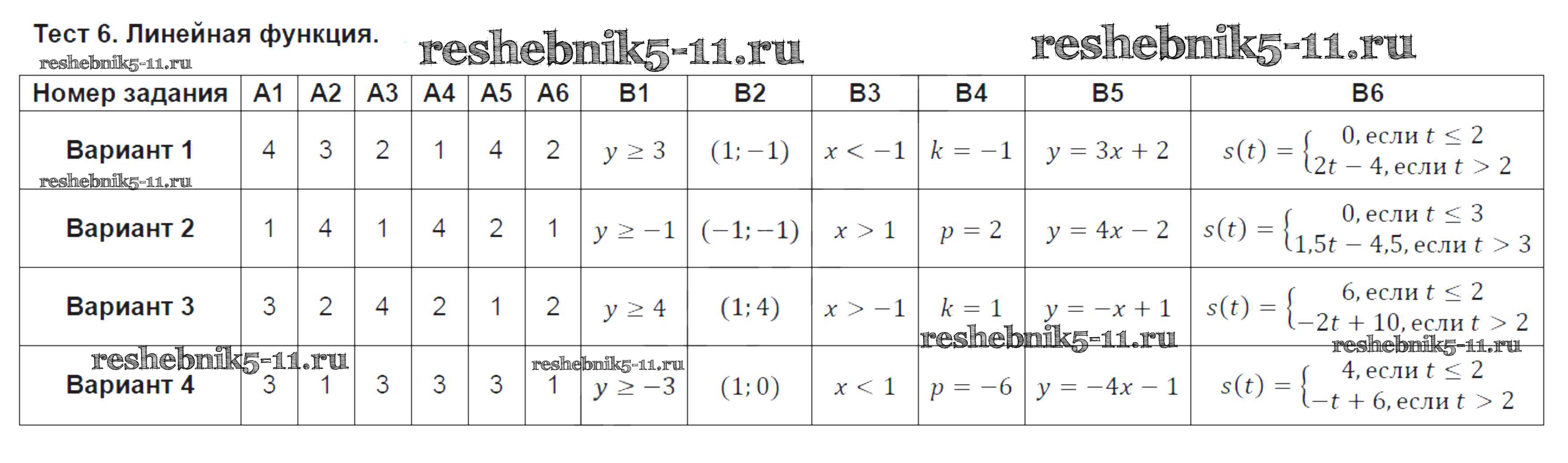 Готовая домашняя работа с ответами по Алгебре за 8 класс Чулков, Струков Тематические тесты МГУ - школе Просвещение 2012 ФГОС - Тесты 6
