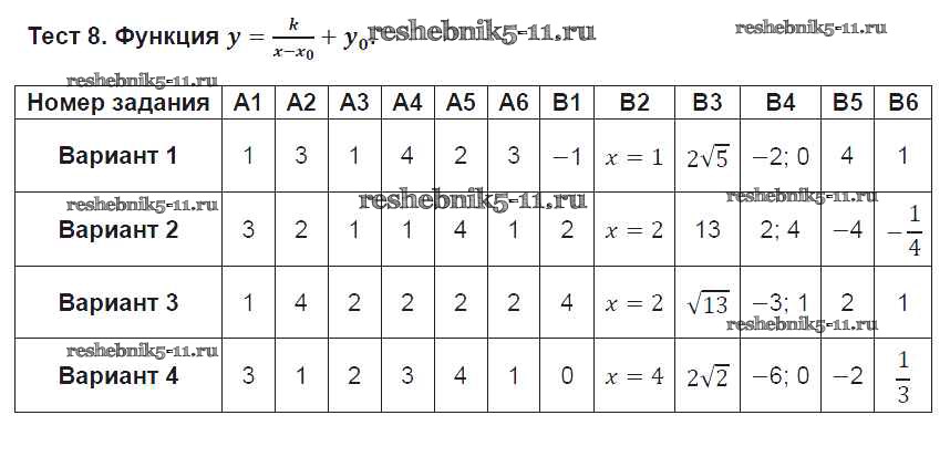 Готовая домашняя работа с ответами по Алгебре за 8 класс Чулков, Струков Тематические тесты МГУ - школе Просвещение 2012 ФГОС - Тесты 8
