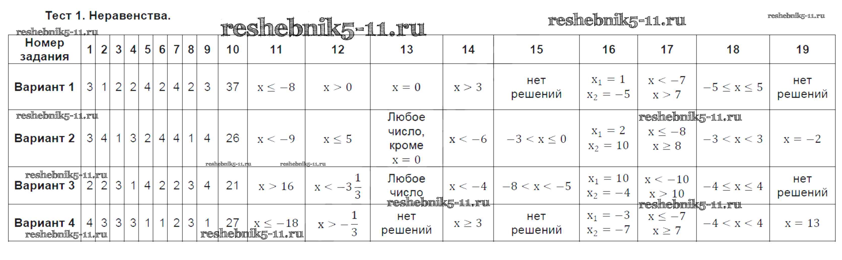 Готовая домашняя работа с ответами по Алгебре за 8 класс Ткачева Тематические тесты Просвещение 2018 ФГОС - Тесты 1