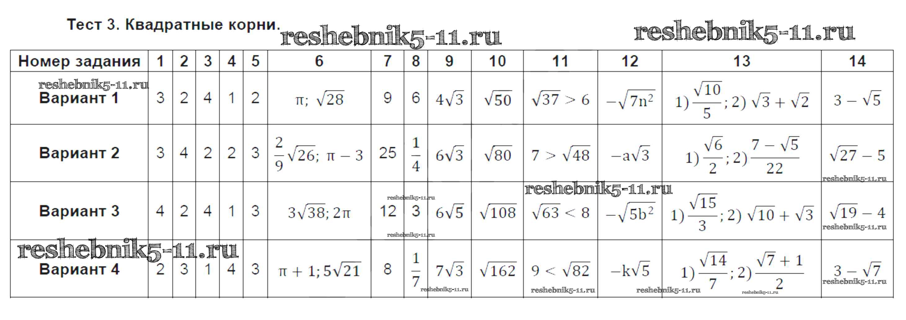 Готовая домашняя работа с ответами по Алгебре за 8 класс Ткачева Тематические тесты Просвещение 2018 ФГОС - Тесты 3