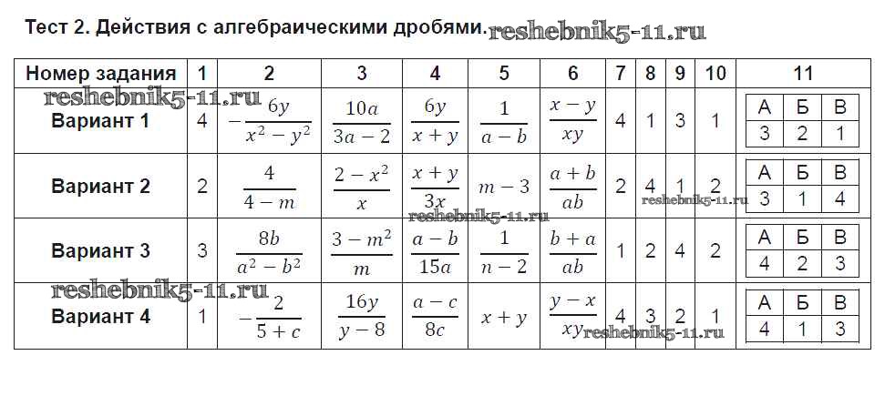 Готовая домашняя работа с ответами по Алгебре за 8 класс Кузнецова, Минаева, Рослова, Суворова Тематические тесты Базовый уровень Просвещение 2018 ФГОС - Тесты 2