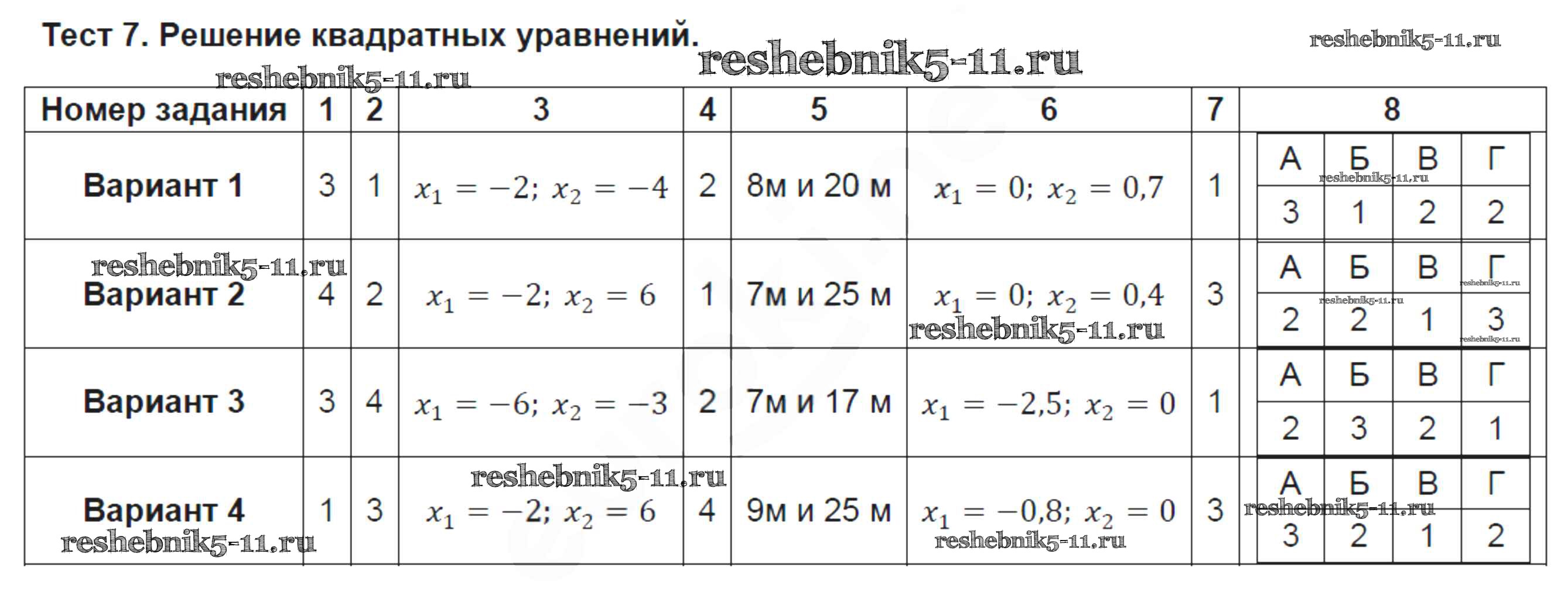 Готовая домашняя работа с ответами по Алгебре за 8 класс Кузнецова, Минаева, Рослова, Суворова Тематические тесты Базовый уровень Просвещение 2018 ФГОС - Тесты 7