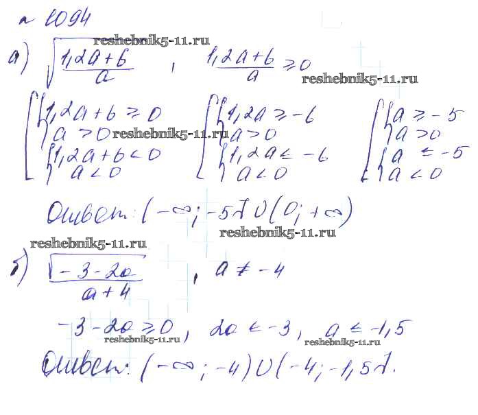 Готовая домашняя работа с ответами по Алгебре за 8 класс Макарычев, Миндюк, Нешков, Феоктистов Учебник Углубленный уровень Мнемозина 2014 ФГОС - Упражнения 1094