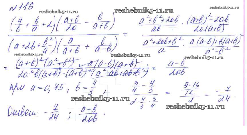 Готовая домашняя работа с ответами по Алгебре за 8 класс Макарычев, Миндюк, Нешков, Феоктистов Учебник Углубленный уровень Мнемозина 2014 ФГОС - Упражнения 116
