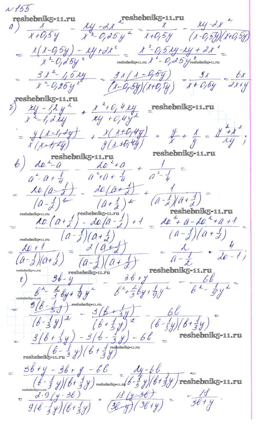 Готовая домашняя работа с ответами по Алгебре за 8 класс Макарычев, Миндюк, Нешков, Феоктистов Учебник Углубленный уровень Мнемозина 2014 ФГОС - Упражнения 155