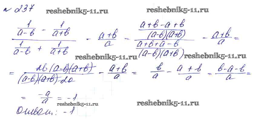 Готовая домашняя работа с ответами по Алгебре за 8 класс Макарычев, Миндюк, Нешков, Феоктистов Учебник Углубленный уровень Мнемозина 2014 ФГОС - Упражнения 237
