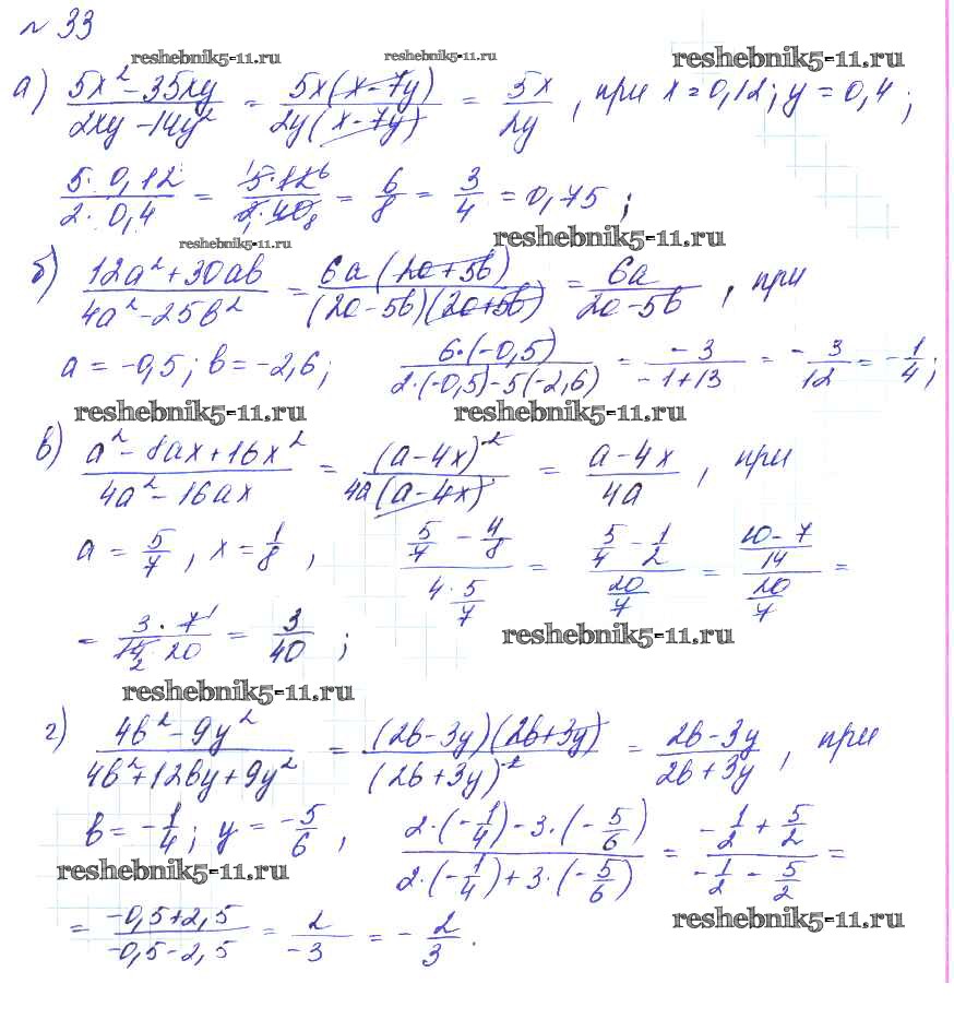 Готовая домашняя работа с ответами по Алгебре за 8 класс Макарычев, Миндюк, Нешков, Феоктистов Учебник Углубленный уровень Мнемозина 2014 ФГОС - Упражнения 33