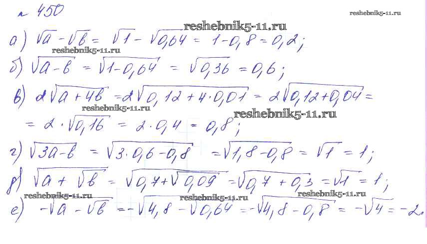 Готовая домашняя работа с ответами по Алгебре за 8 класс Макарычев, Миндюк, Нешков, Феоктистов Учебник Углубленный уровень Мнемозина 2014 ФГОС - Упражнения 450