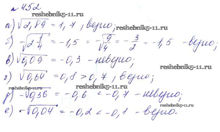 Готовая домашняя работа с ответами по Алгебре за 8 класс Макарычев, Миндюк, Нешков, Феоктистов Учебник Углубленный уровень Мнемозина 2014 ФГОС - Упражнения 452