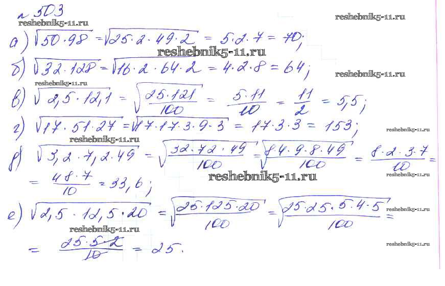 Готовая домашняя работа с ответами по Алгебре за 8 класс Макарычев, Миндюк, Нешков, Феоктистов Учебник Углубленный уровень Мнемозина 2014 ФГОС - Упражнения 503