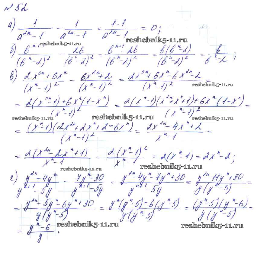 Готовая домашняя работа с ответами по Алгебре за 8 класс Макарычев, Миндюк, Нешков, Феоктистов Учебник Углубленный уровень Мнемозина 2014 ФГОС - Упражнения 52