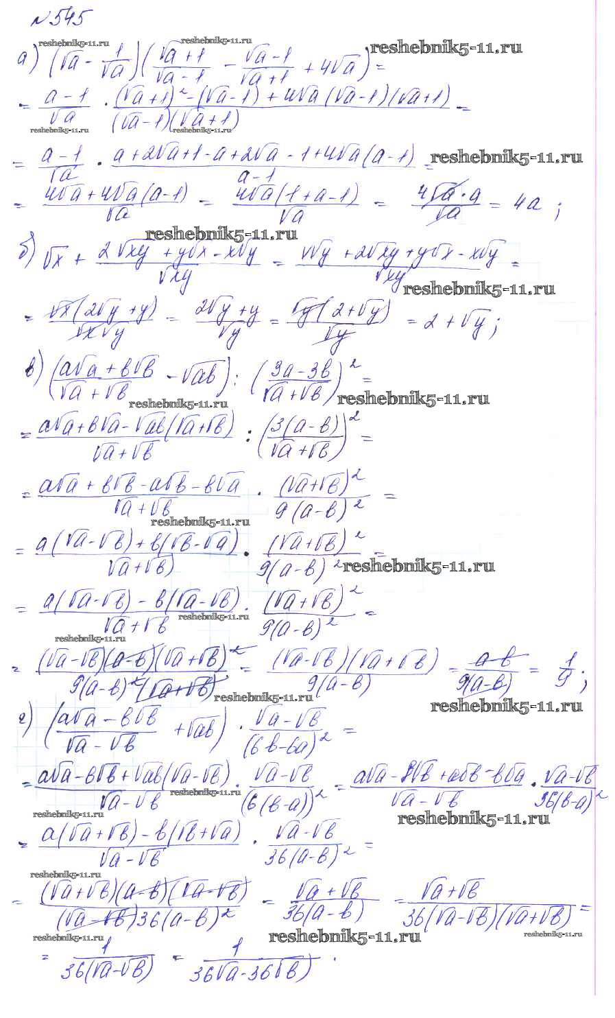 Готовая домашняя работа с ответами по Алгебре за 8 класс Макарычев, Миндюк, Нешков, Феоктистов Учебник Углубленный уровень Мнемозина 2014 ФГОС - Упражнения 545