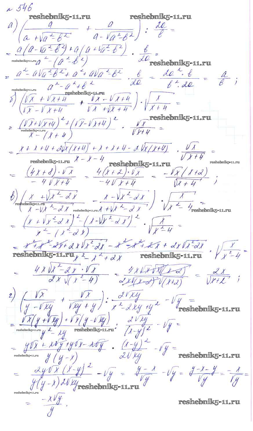 Готовая домашняя работа с ответами по Алгебре за 8 класс Макарычев, Миндюк, Нешков, Феоктистов Учебник Углубленный уровень Мнемозина 2014 ФГОС - Упражнения 546