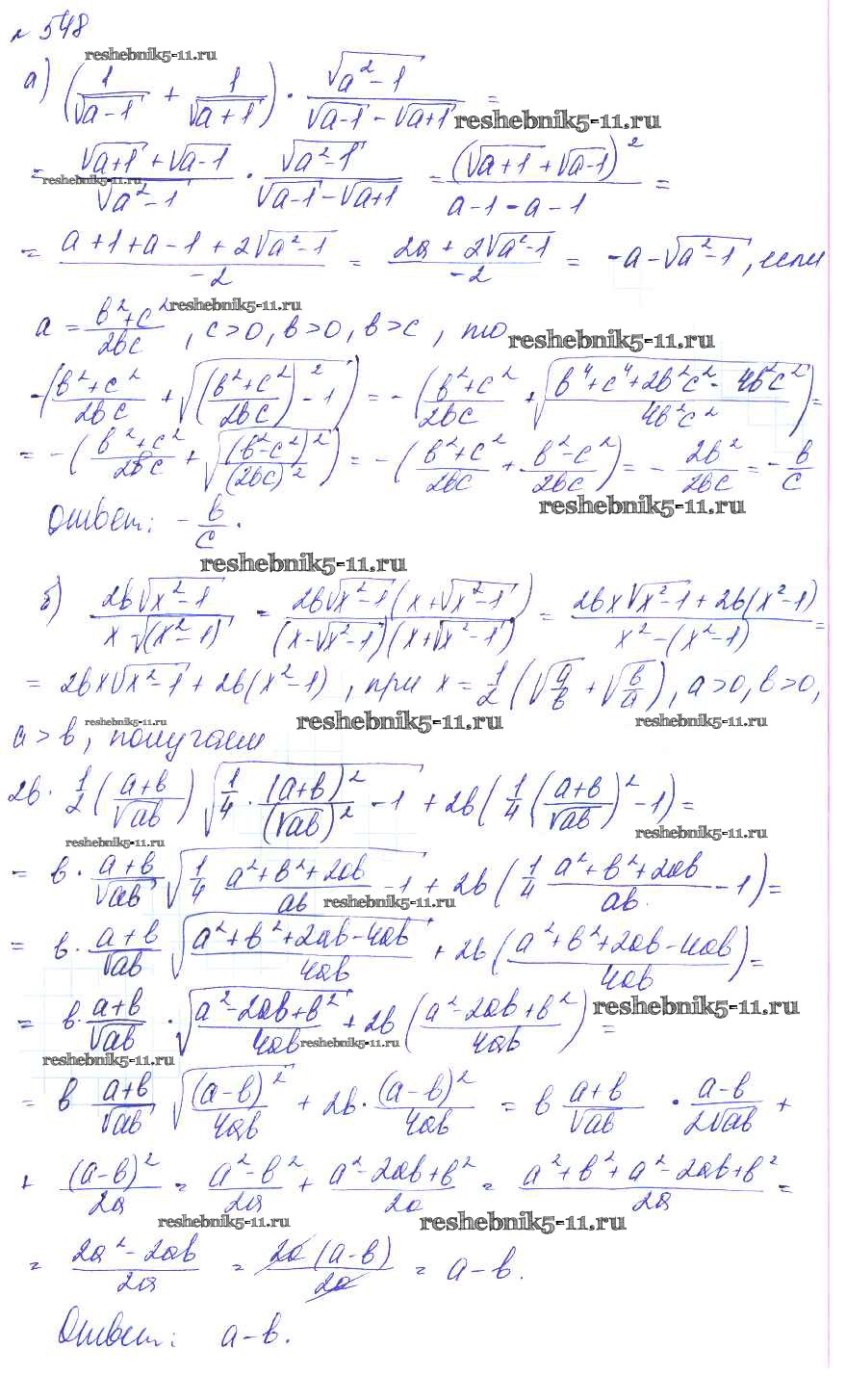 Готовая домашняя работа с ответами по Алгебре за 8 класс Макарычев, Миндюк, Нешков, Феоктистов Учебник Углубленный уровень Мнемозина 2014 ФГОС - Упражнения 548