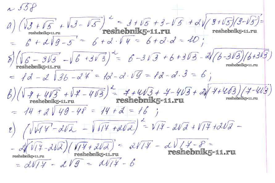Готовая домашняя работа с ответами по Алгебре за 8 класс Макарычев, Миндюк, Нешков, Феоктистов Учебник Углубленный уровень Мнемозина 2014 ФГОС - Упражнения 558