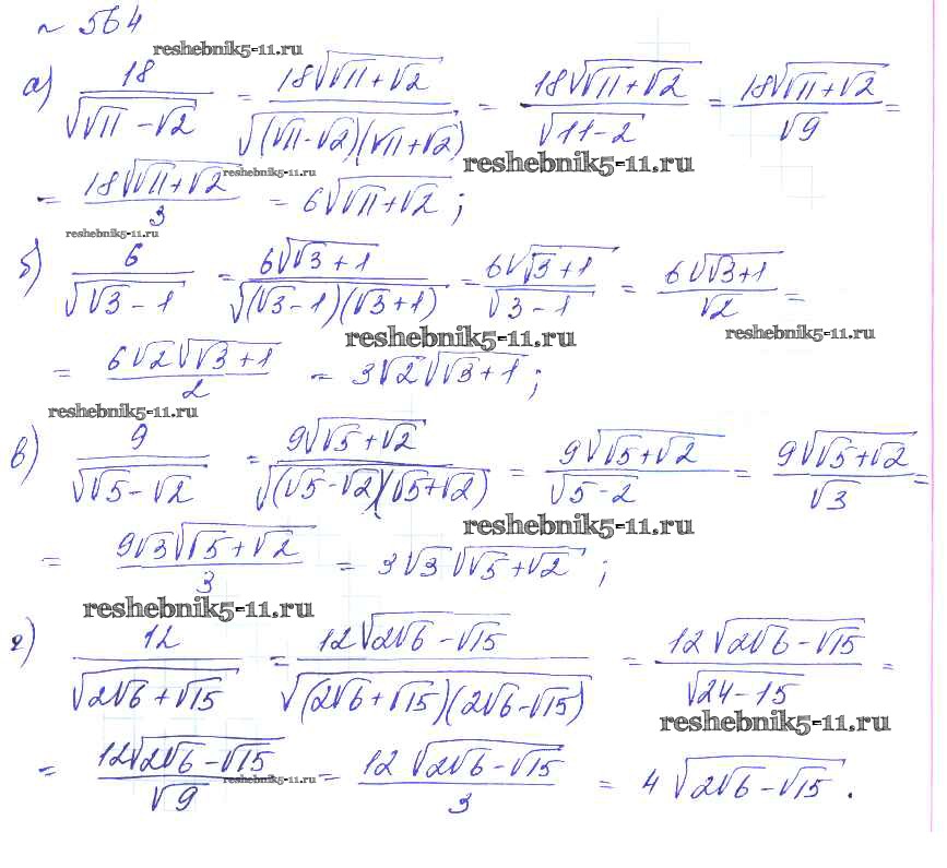 Готовая домашняя работа с ответами по Алгебре за 8 класс Макарычев, Миндюк, Нешков, Феоктистов Учебник Углубленный уровень Мнемозина 2014 ФГОС - Упражнения 564