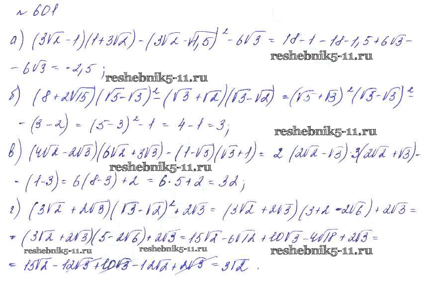Готовая домашняя работа с ответами по Алгебре за 8 класс Макарычев, Миндюк, Нешков, Феоктистов Учебник Углубленный уровень Мнемозина 2014 ФГОС - Упражнения 601