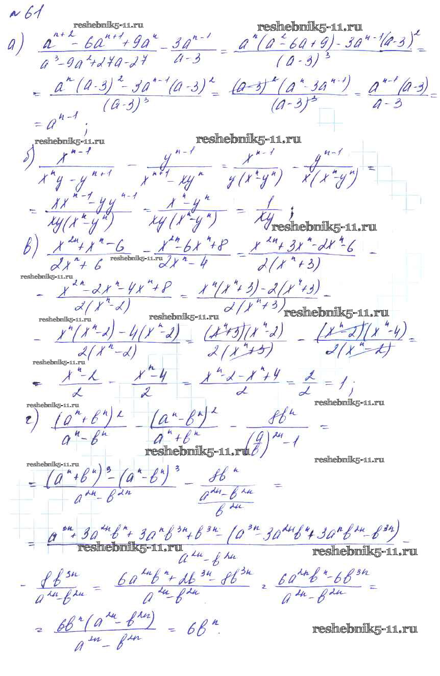 Готовая домашняя работа с ответами по Алгебре за 8 класс Макарычев, Миндюк, Нешков, Феоктистов Учебник Углубленный уровень Мнемозина 2014 ФГОС - Упражнения 61