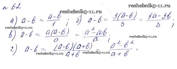 Готовая домашняя работа с ответами по Алгебре за 8 класс Макарычев, Миндюк, Нешков, Феоктистов Учебник Углубленный уровень Мнемозина 2014 ФГОС - Упражнения 62