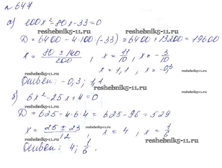 Готовая домашняя работа с ответами по Алгебре за 8 класс Макарычев, Миндюк, Нешков, Феоктистов Учебник Углубленный уровень Мнемозина 2014 ФГОС - Упражнения 647