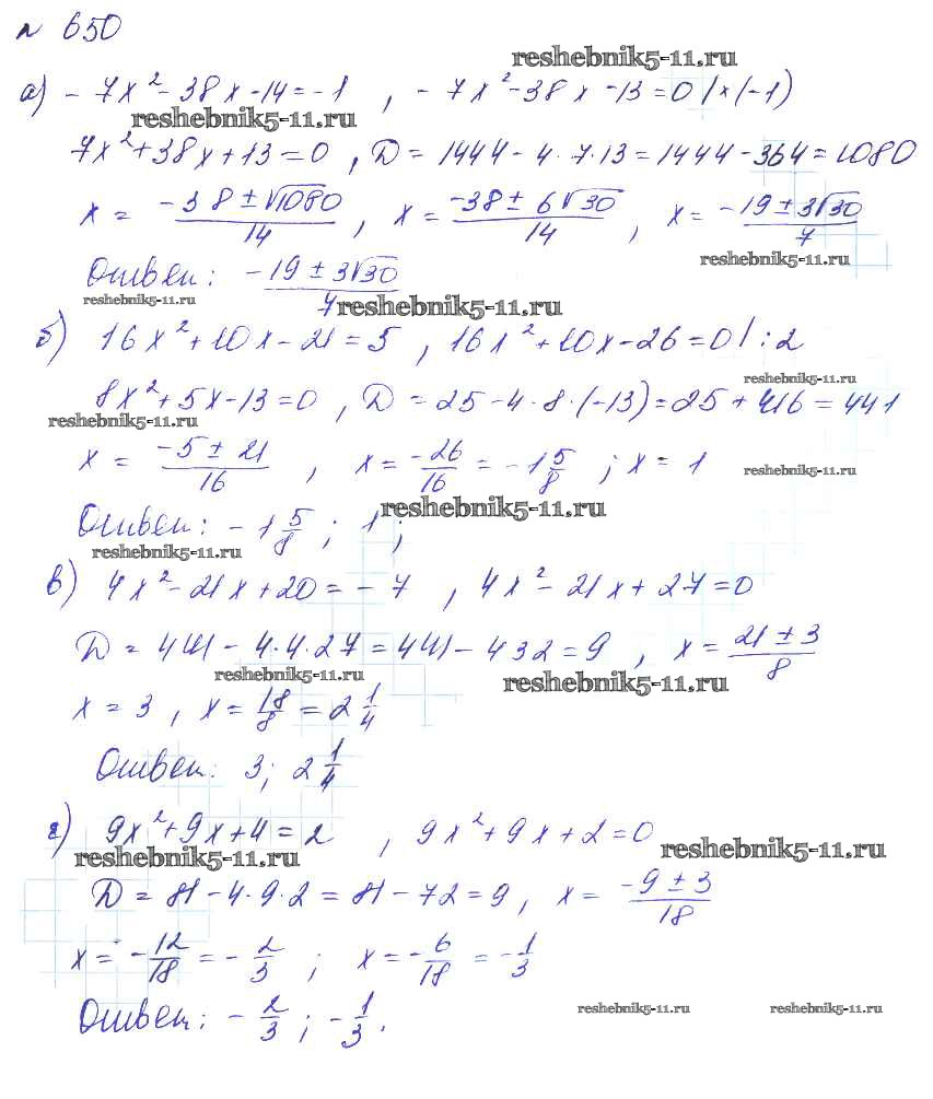 Готовая домашняя работа с ответами по Алгебре за 8 класс Макарычев, Миндюк, Нешков, Феоктистов Учебник Углубленный уровень Мнемозина 2014 ФГОС - Упражнения 650
