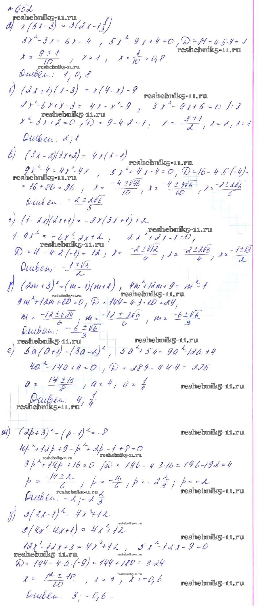 Готовая домашняя работа с ответами по Алгебре за 8 класс Макарычев, Миндюк, Нешков, Феоктистов Учебник Углубленный уровень Мнемозина 2014 ФГОС - Упражнения 652