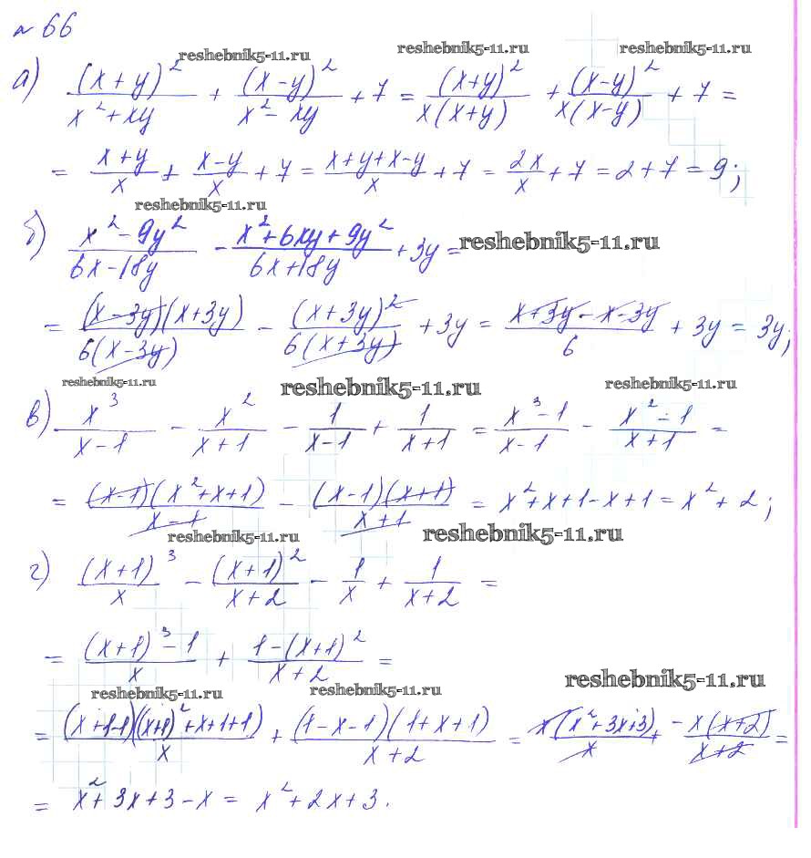 Готовая домашняя работа с ответами по Алгебре за 8 класс Макарычев, Миндюк, Нешков, Феоктистов Учебник Углубленный уровень Мнемозина 2014 ФГОС - Упражнения 66
