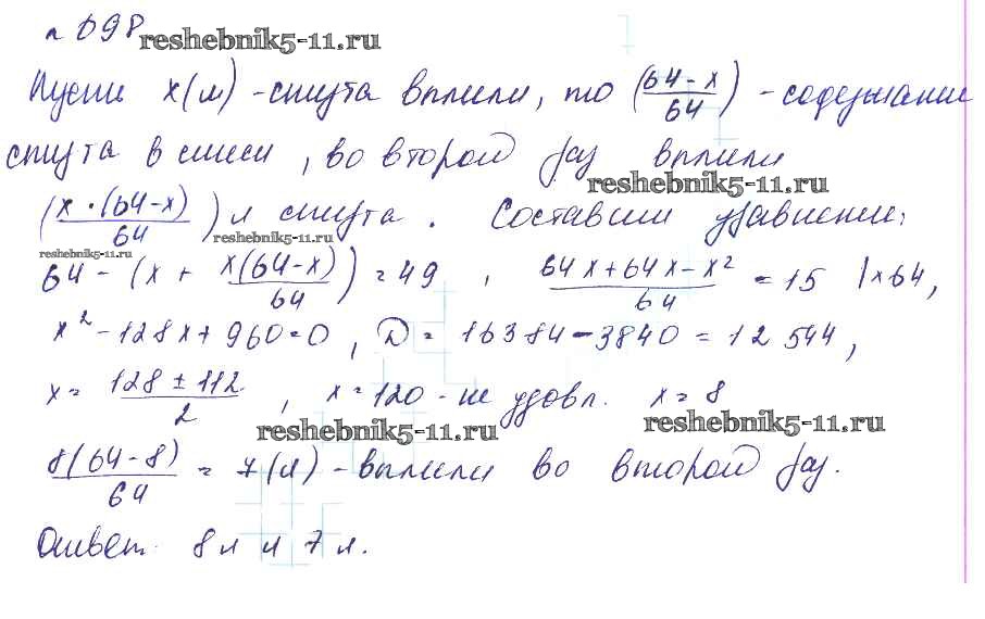 Готовая домашняя работа с ответами по Алгебре за 8 класс Макарычев, Миндюк, Нешков, Феоктистов Учебник Углубленный уровень Мнемозина 2014 ФГОС - Упражнения 698