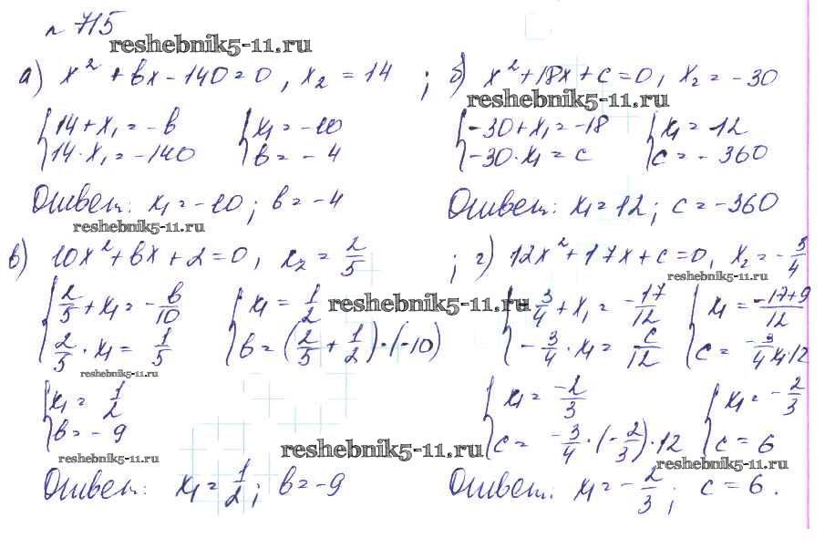 Готовая домашняя работа с ответами по Алгебре за 8 класс Макарычев, Миндюк, Нешков, Феоктистов Учебник Углубленный уровень Мнемозина 2014 ФГОС - Упражнения 715