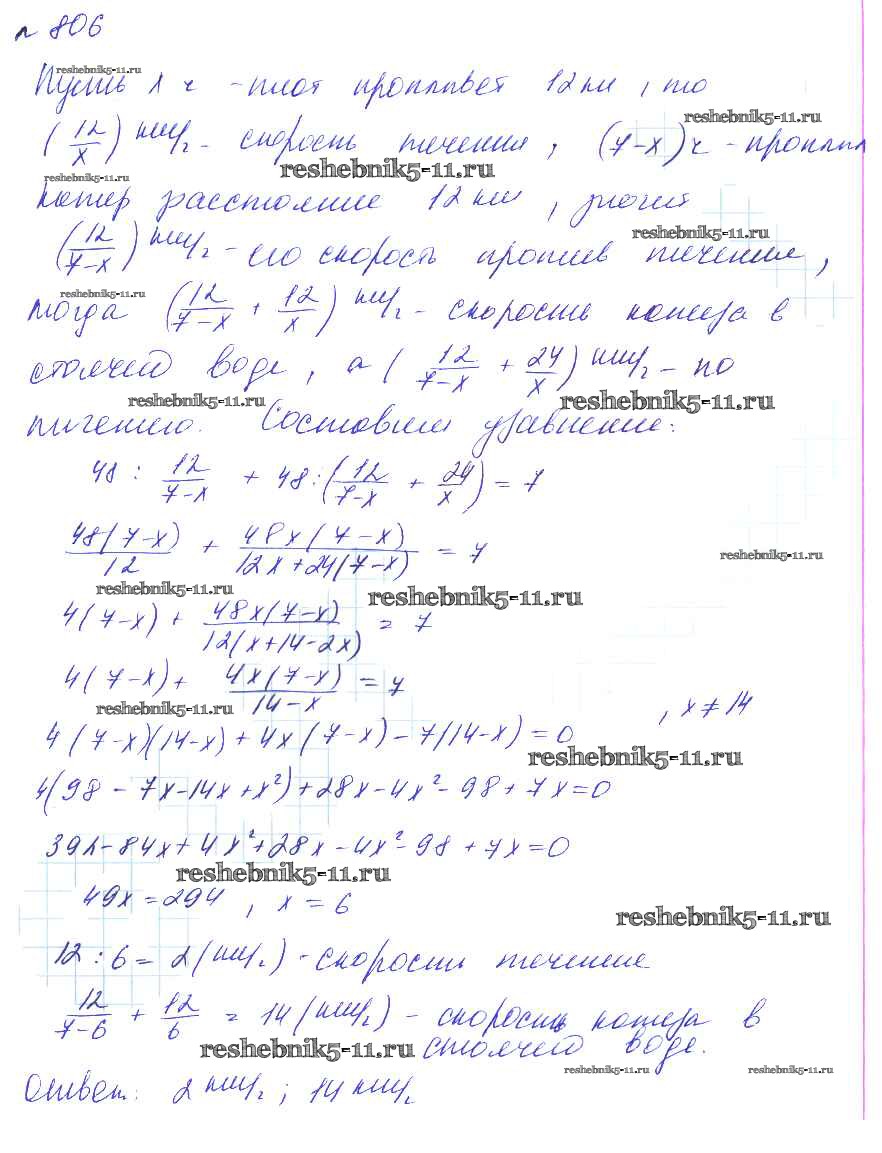 Готовая домашняя работа с ответами по Алгебре за 8 класс Макарычев, Миндюк, Нешков, Феоктистов Учебник Углубленный уровень Мнемозина 2014 ФГОС - Упражнения 806