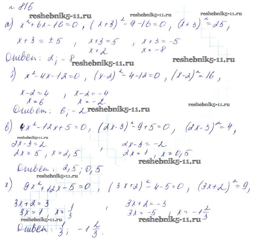 Готовая домашняя работа с ответами по Алгебре за 8 класс Макарычев, Миндюк, Нешков, Феоктистов Учебник Углубленный уровень Мнемозина 2014 ФГОС - Упражнения 816