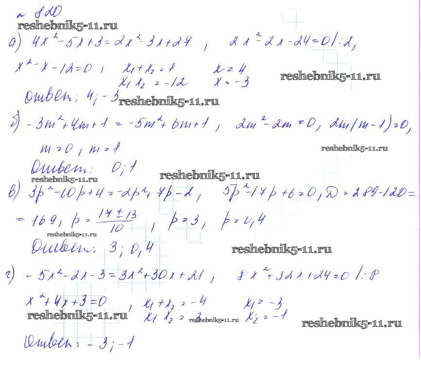 Готовая домашняя работа с ответами по Алгебре за 8 класс Макарычев, Миндюк, Нешков, Феоктистов Учебник Углубленный уровень Мнемозина 2014 ФГОС - Упражнения 820